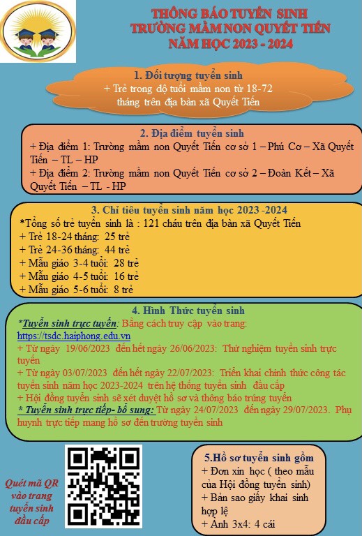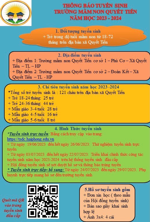 THÔNG BÁO TUYỂN SINH TRƯỜNG MẦM NON QUYẾT TIẾN NĂM HỌC 2023-2024