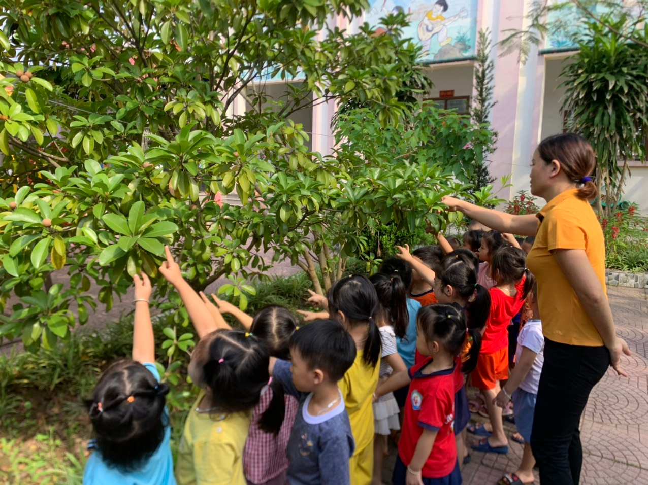 Hoạt động ngoài trời – quan sát và chăm sóc vườn rau của các bé lớp 4 tuổi B1