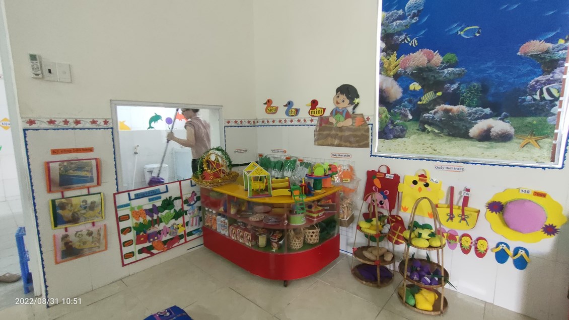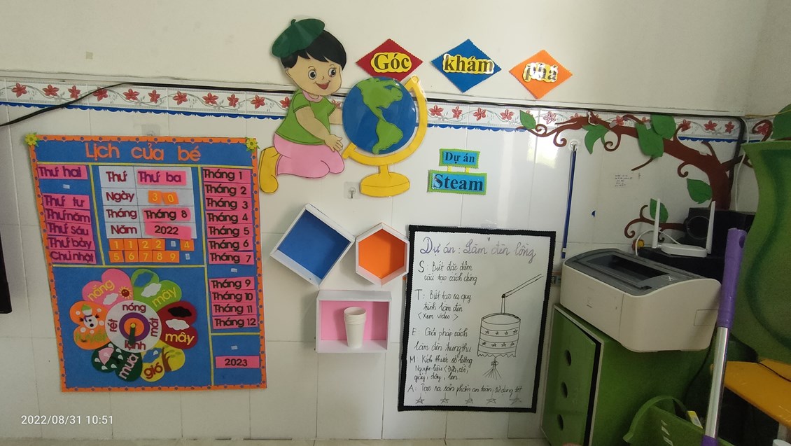 Để chuẩn bị tốt cho năm học 2022-2023. Ngay từ đầu tháng 8 nhà trường đã xây dựng kế hoạch chỉ đạo các lớp trang trí phòng nhóm và tạo môi trường mầm non xanh - an toàn- hạnh phúc. Tạo môi trường lấy trẻ làm trung tâm, cho trẻ có cơ hội được khám phá, trải nghiệm qua các hoạt động, qua các góc sáng  tạo... Giúp các con tự tin, thoải mái khi đến trường.