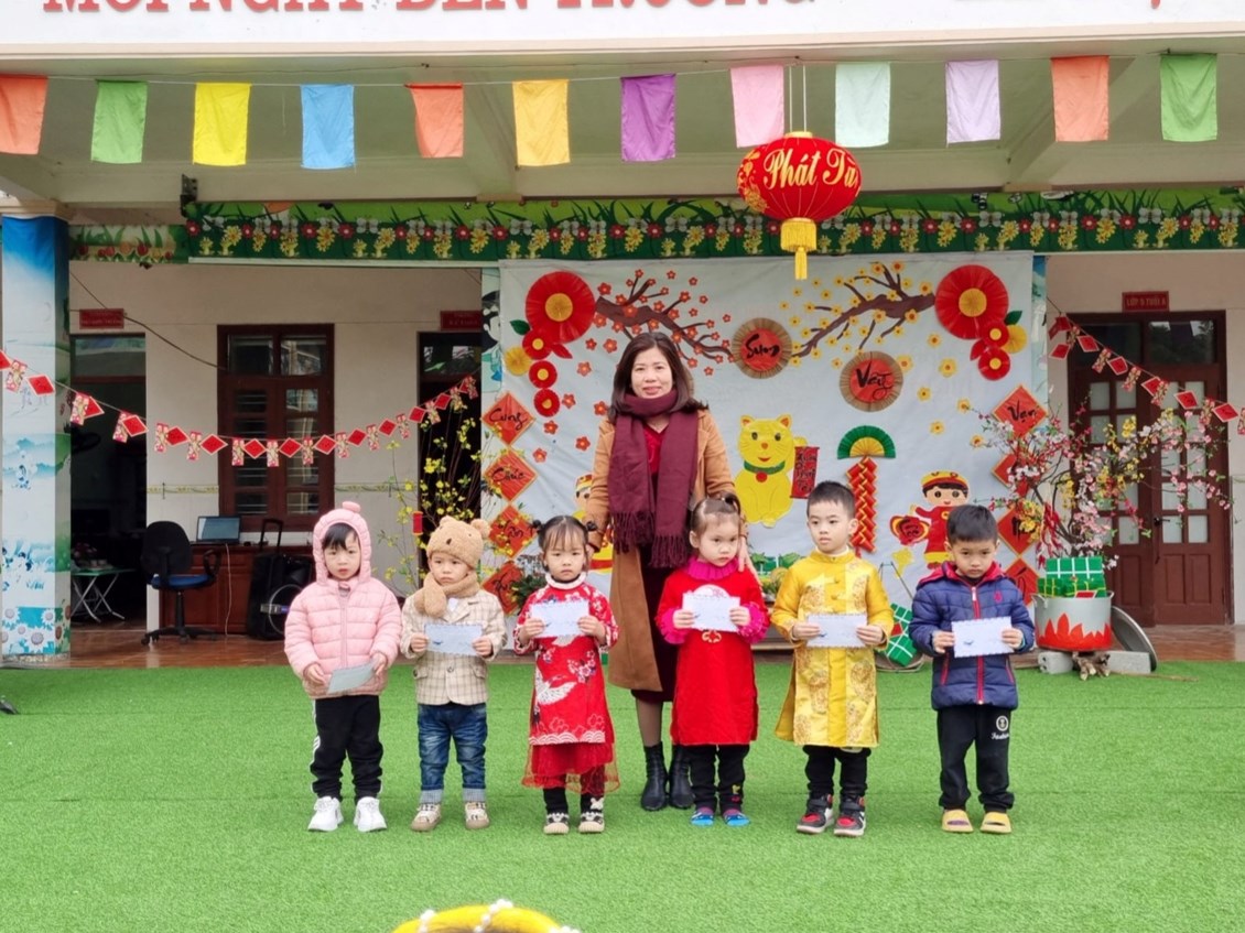 Năm nay, nhà trường tổ chức ăn tiệc tất niên tập trung tại sân trường. Các cô cấp dưỡng đã lên thực đơn, lựa chọn các món ăn mà trẻ yêu thích, chế biến các món ăn thật ngon cho trẻ. Bên cạnh đó, với đôi bàn tay khéo léo và sự tận tâm đối với trẻ của các cô giáo đã trang trí các món ăn đẹp mắt, chuẩn bị chu đáo bữa ăn cho trẻ. Bên cạnh đó, nhà trường đã tặng16 suất quà của tập thể CBGVNV dành cho các bé có hoàn cảnh khó khăn đang học tại trường. Chương trình ngắn gọn súc tích mà lan toả được những yêu thương, tình cảm trong không khí sum vầy ấm áp của Tết cổ truyền dân tộc. thơ.
