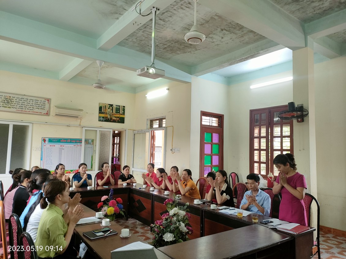 Chào mừng Kỷ niệm 133 năm ngày sinh Chủ Tịch Hồ Chí Minh vĩ đại (19/5/1890-19/5/2023)- vị lãnh tụ thiên tài của Đảng Cộng Sản, giai cấp công nhân và dân tộc Việt Nam, 68 năm ngày giải phóng Hải Phòng (13/5/1955-13/5/2023) và 70 năm ngày quân và dân Tiên Lãng anh dũng phá càn Thắng lợi (28/8/1953-28/8/2023), Sáng ngày 19/5/2023, Chi bộ Trường MN Quyết Tiến đã xem xét và tổ chức Lễ kết nạp Đảng viên mới quần chúng ưu tú là Đ/c Nguyễn Thị Tuyến được đứng trong hàng ngũ của Đảng.