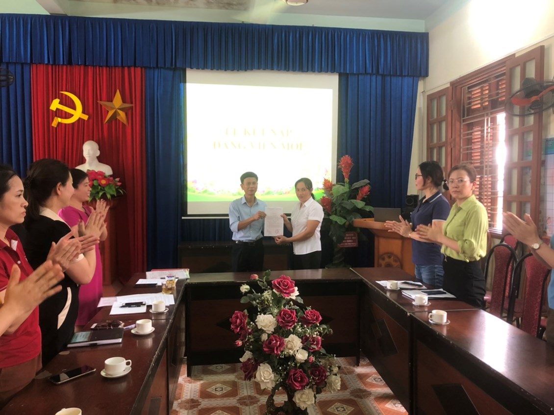 Phát biểu tại Lễ kết nạp Đảng viên Đồng chí Nguyễn Thị Thu –Bí thư Chi bộ đã phân công nhiệm vụ cho đảng viên mới và chúc mừng đồng chí, sau một thời gian được bồi dưỡng, thử thách đã được vinh dự đứng trong hàng ngũ của Đảng Cộng sản Việt Nam.