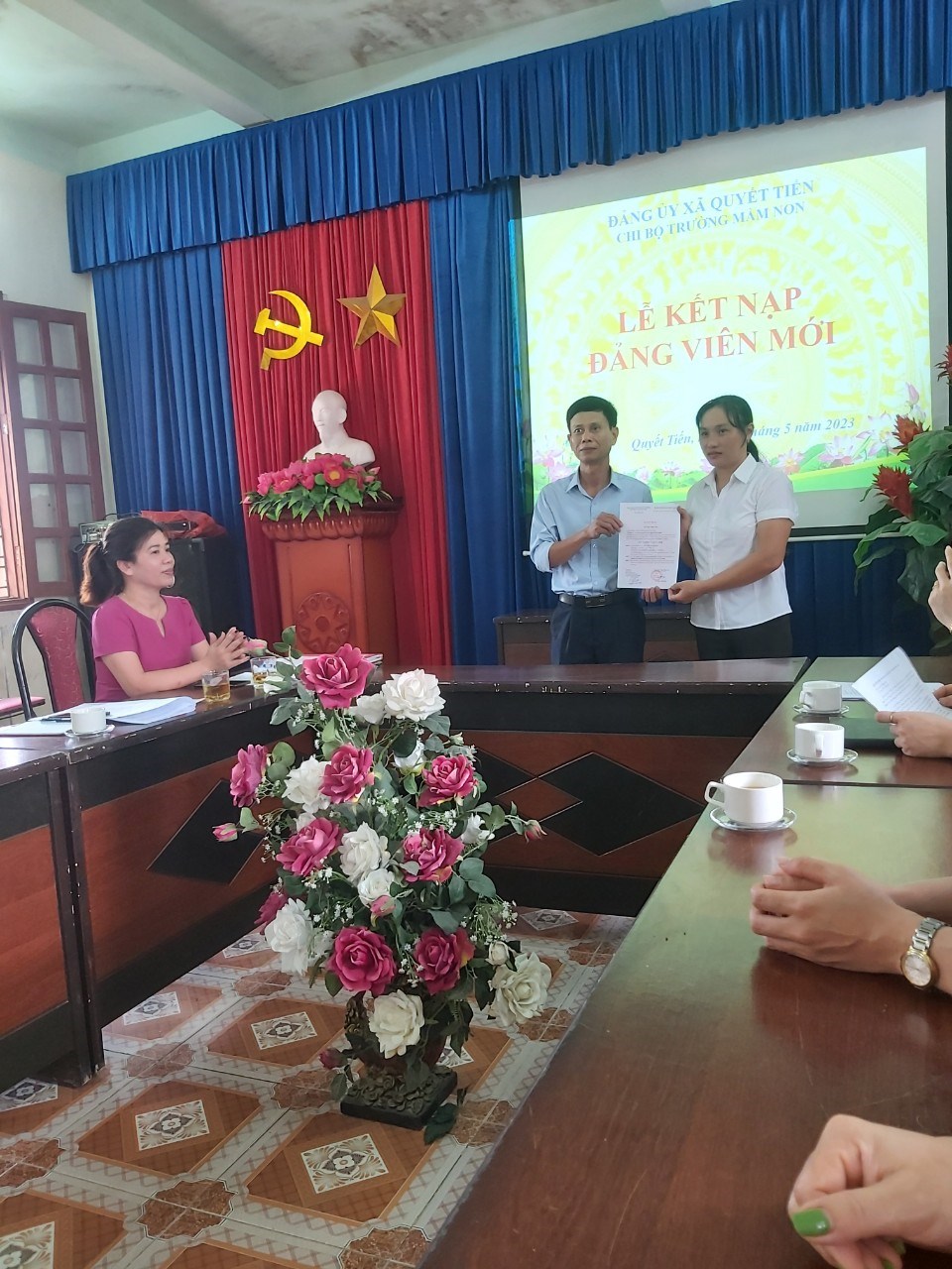 Lễ kết nạp Đảng viên mới của chi bộ trường Mầm non Quyết Tiến