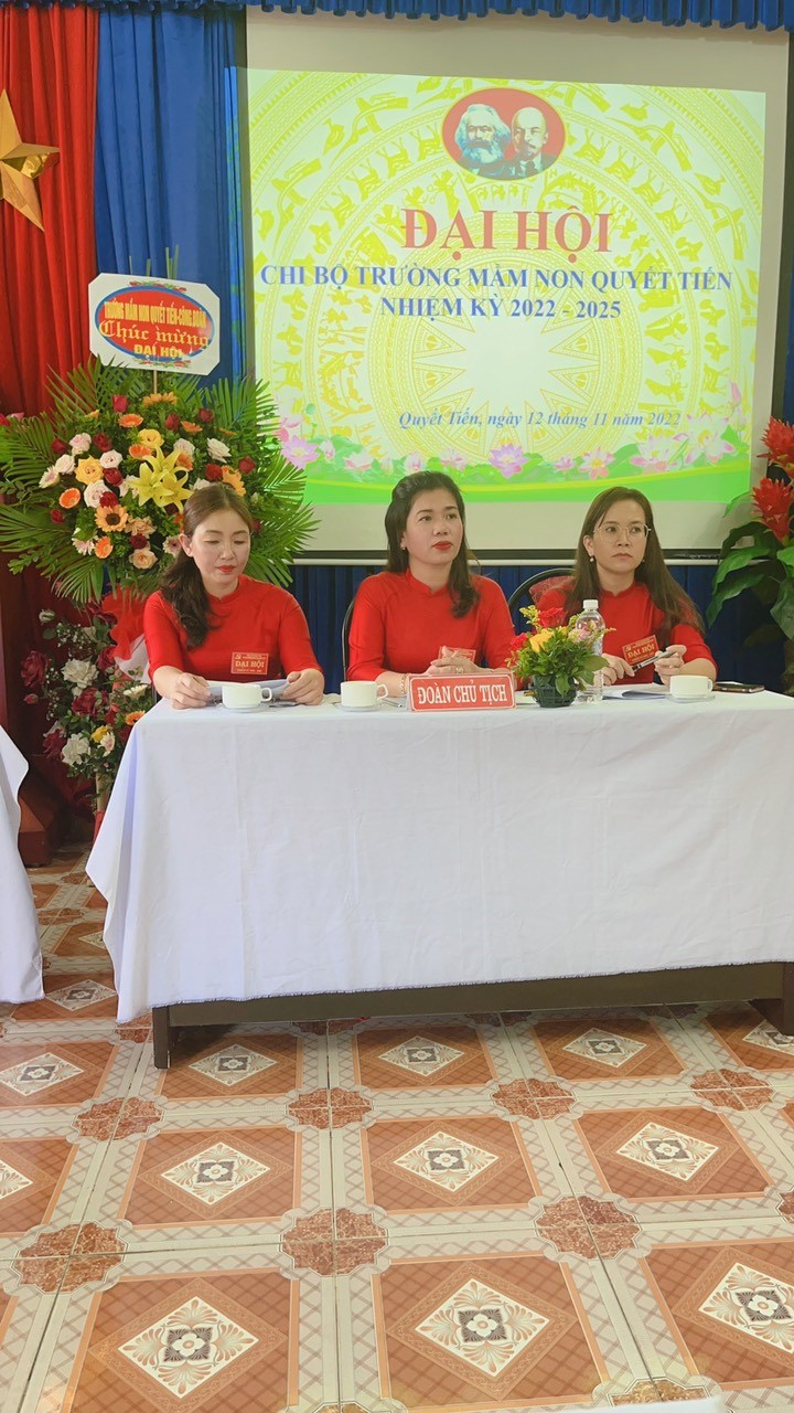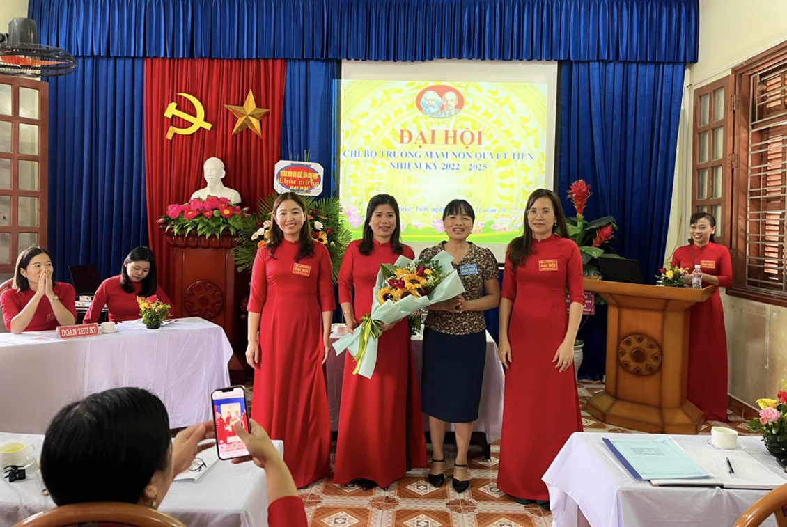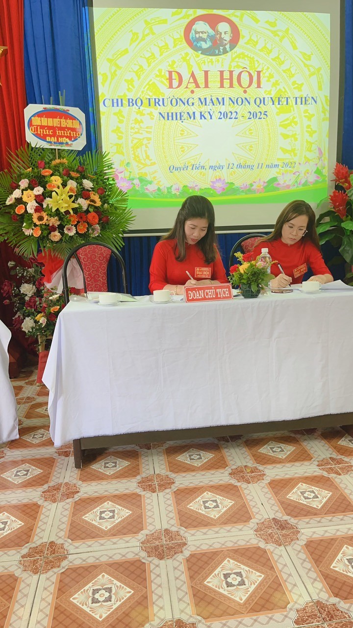 Đại hội đã tiến hành bầu ra Cấp ủy, Bí thư, phó bí thư nhiệm kỳ 2022-2025. Đồng chí Nguyễn Thị Thu được Đại hội tín nhiệm bầu làm Bí thư chi bộ. Đồng chí Nguyễn Thị Huệ làm phó bí thư chi bộ. Với tinh thần làm việc khẩn trương, nghiêm túc và trách nhiệm, Đại hội Chi bộ trường Mầm non Quyết Tiến nhiệm kỳ 2022 - 2025 đã thành công tốt đẹp. Tập thể Chi bộ trường mầm non Quyết Tiến quyết tâm tổ chức thực hiện đạt hiệu quả tốt các mục tiêu, phương hướng trong nhiệm kỳ tới.