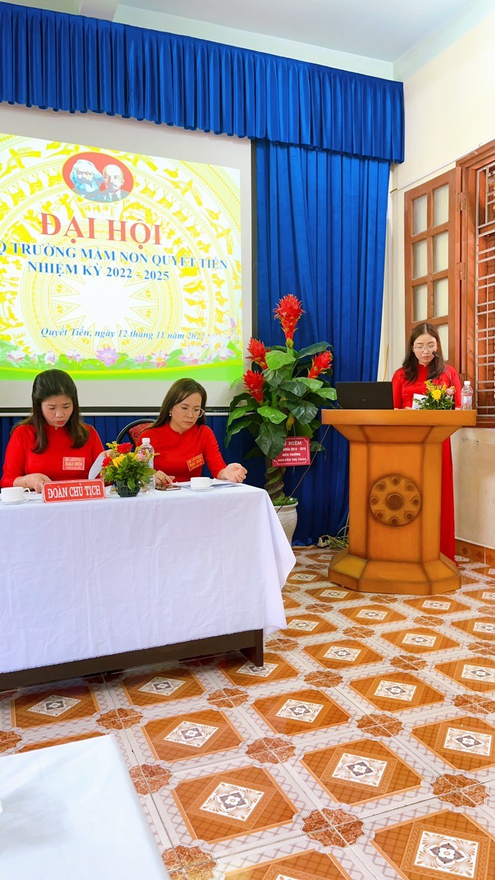 Sáng ngày12/11/2022, Chi bộ Trường Mầm non Quyết Tiến tổ chức Đại hội Chi bộ nhiệm kỳ 2022-2025. Về dự và chỉ đạo Đại hội có đồng chí Phạm Thị Chung - Bí thư Đảng ủy xã Quyết Tiến, Đ/c Lê Duy Ước phó bí thư thường trực Đảng ủy xã Quyết Tiến cùng 30 đồng chí Đảng viên trong chi bộ Trường Mầm non Quyết Tiến hân hoan trong niềm vui khi được về dự đại hội.