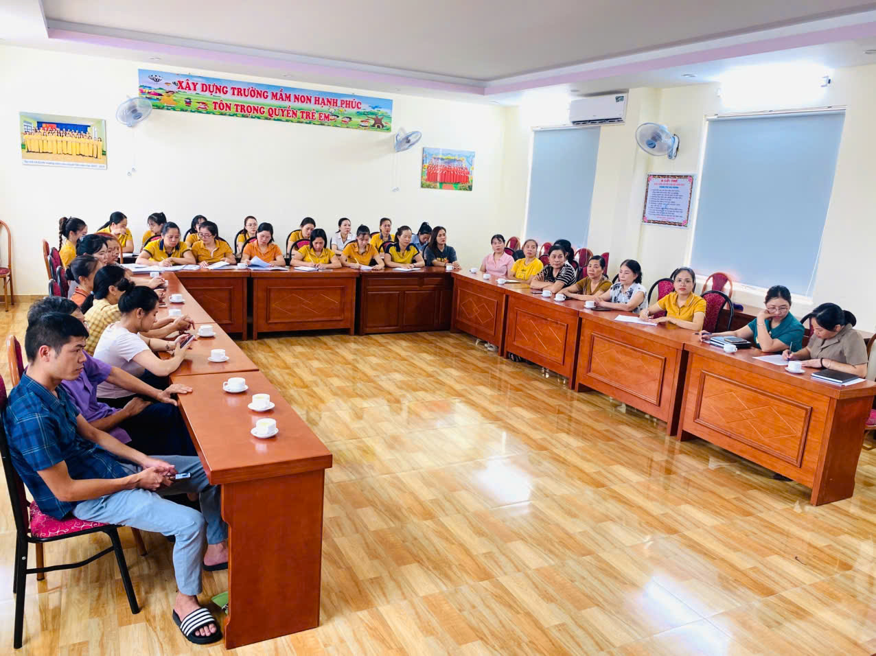 Để tăng cường mối liên hệ, phối hợp giữa gia đình và nhà trường trong công tác chăm sóc, giáo dục trẻ việc tổ chức họp phụ huynh đầu năm là vô cùng cần thiết và ý nghĩa. Đây cũng là dịp để giáo viên lắng nghe những chia sẻ từ các bậc phụ huynh về việc học tập và sinh hoạt của các con tại trường cũng như tại gia đình.