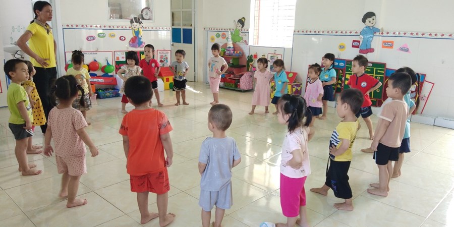 Sau đây là hình ảnh giờ tập thể dục sáng của các cháu.
