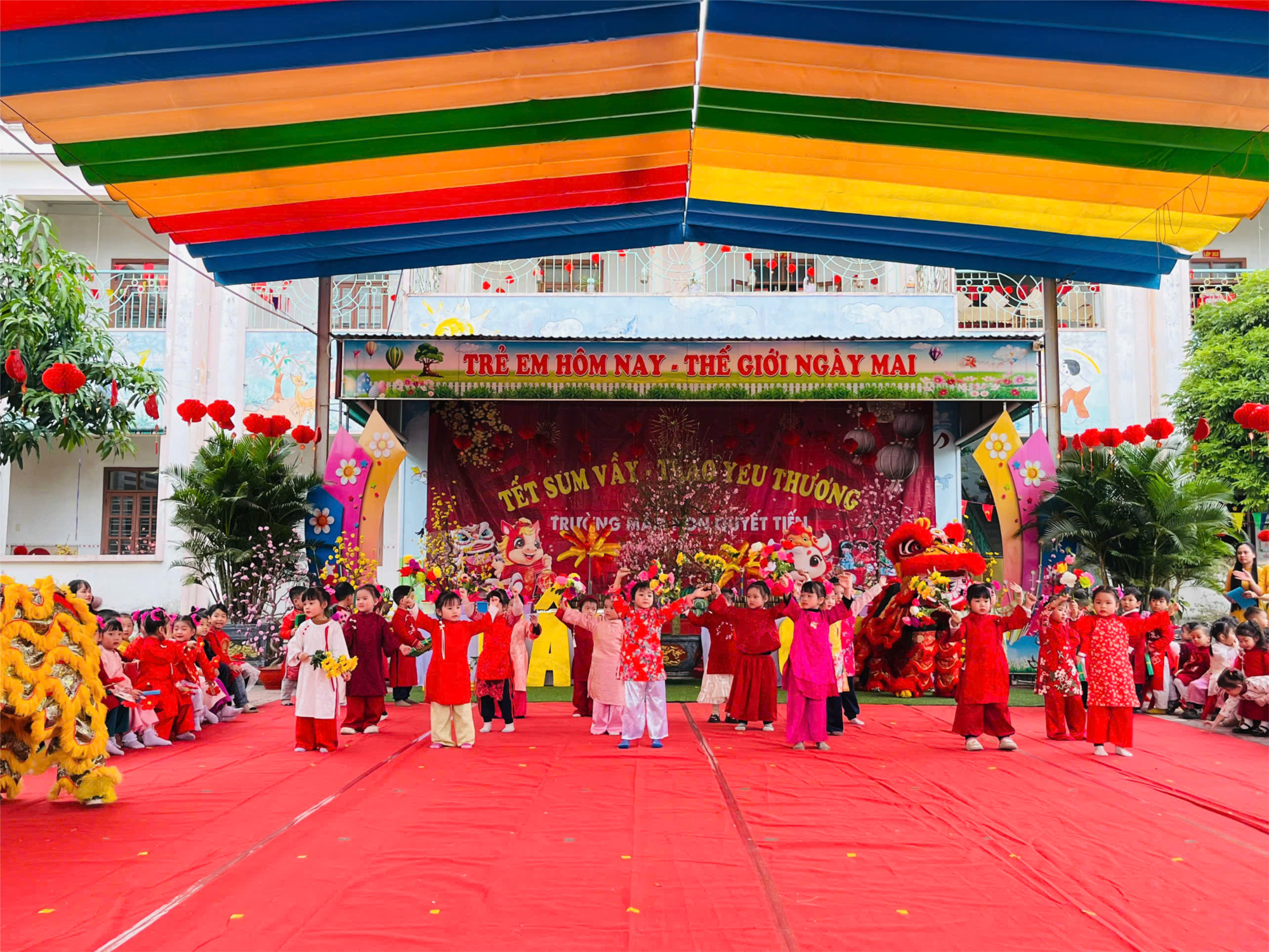 🌸 Trong không khí rộn ràng, hân hoan của những ngày cuối năm, Trường Mầm non Quyết Tiến đã tổ chức chương trình “Tết sum vầy – Trao yêu thương” chào đón Tết Nguyên đán Bính Ngọ năm 2026 trong niềm vui tươi, ấm áp và đầy ý nghĩa. Chương trình là dịp để cô và trò cùng nhau hòa mình vào không gian đậm sắc xuân, lưu giữ những khoảnh khắc đẹp trước thềm năm mới.