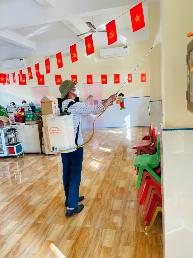 🏫 Các khu vực được phun thuốc bao gồm: phòng học, phòng chức năng, hành lang, khu bếp ăn bán trú, sân chơi và khu vực xung quanh trường. Sau khi hoàn tất, nhà trường tiến hành vệ sinh, lau chùi bề mặt bàn ghế, đồ dùng học tập, mở cửa thông thoáng phòng học trước khi đón trẻ quay trở lại lớp.
